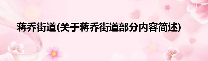 蒋乔街道(关于蒋乔街道部分内容简述)