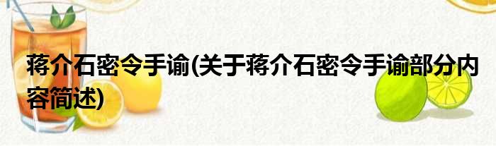 蒋介石密令手谕(关于蒋介石密令手谕部分内容简述)