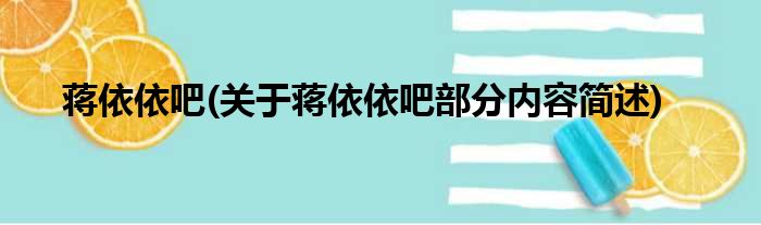 蒋依依吧(关于蒋依依吧部分内容简述)