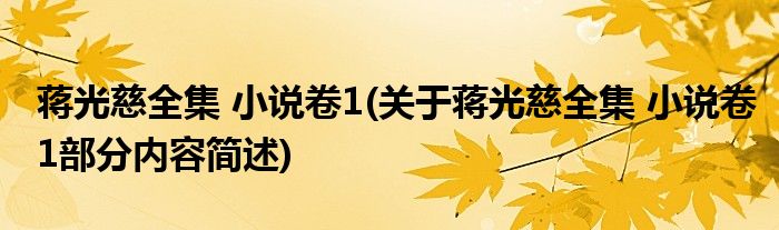 导读 大家好,今天小方来说说一篇关于蒋光慈全集 小说卷1,关于蒋光慈全集 小说卷1部分内容简述的文章,那么现在就为大家来简单介绍下,希望对