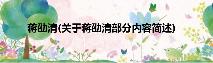 导读 大家好,今天小方来说说一篇关于蒋劭清,关于蒋劭清部分内容简述的文章,那么现在就为大家来简单介绍下,希望对各位小伙伴们有所帮助。