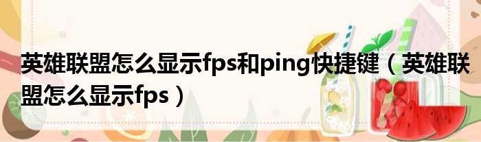 导读 大家好,小活来为大家解答以上的问题。英雄联盟怎么显示fps和ping快捷键,英雄联盟怎么显示fps这个很多人还不知道,现在让我们一起来看看吧!