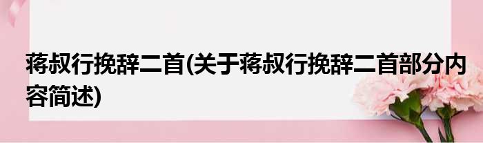蒋叔行挽辞二首(关于蒋叔行挽辞二首部分内容简述)