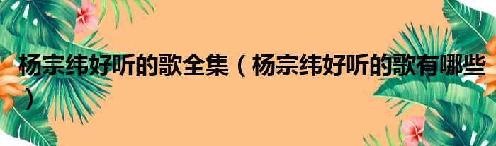 杨宗纬好听的歌全集(杨宗纬好听的歌有哪些)