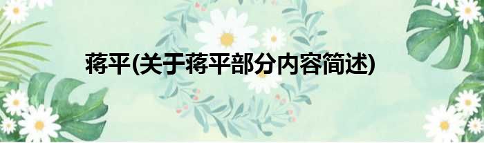 蒋平(关于蒋平部分内容简述)
