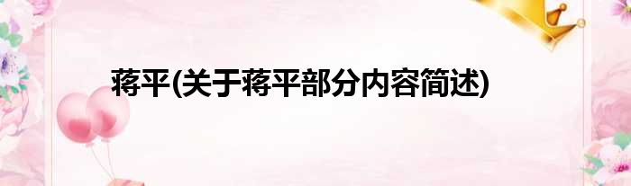 导读 大家好,今天小方来说说一篇关于蒋平,关于蒋平部分内容简述的文章,那么现在就为大家来简单介绍下,希望对各位小伙伴们有所帮助。