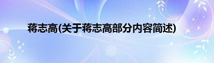 导读 大家好,今天小方来说说一篇关于蒋志高,关于蒋志高部分内容简述的文章,那么现在就为大家来简单介绍下,希望对各位小伙伴们有所帮助。