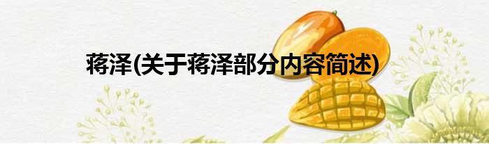 大家好,今天小方来说说一篇关于蒋泽,关于蒋泽部分内容简述的文章,那么现在就为大家来简单介绍下,希望对各位小伙伴们有所帮助。
