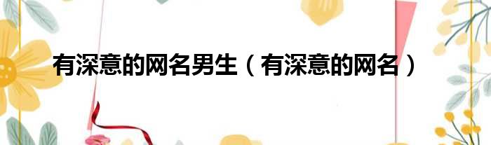 大家好,小活来为大家解答以上的问题。有深意的网名男生,有深意的网名这个很多人还不知道,现在让我们一起来看看吧!