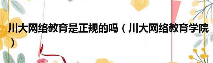 川大网络教育是正规的吗(川大网络教育学院)