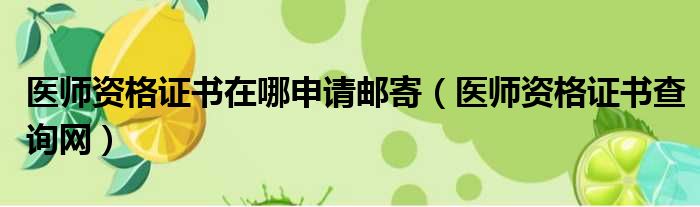 医师资格证书在哪申请邮寄(医师资格证书查询网)