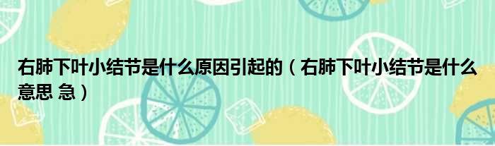 右肺下叶小结节是什么原因引起的(右肺下叶小结节是什么意思 急)