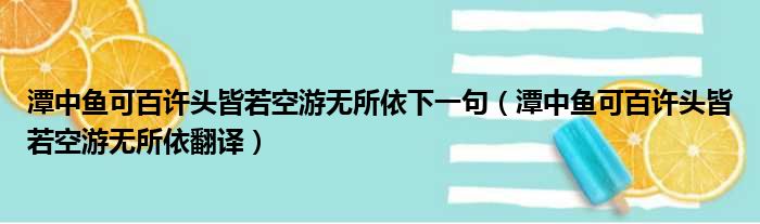 导读 大家好,小活来为大家解答以上的问题。潭中鱼可百许头皆若空游无所依下一句,潭中鱼可百许头皆若空游无所依翻译这个很多人还不知道,现在让我