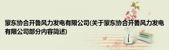蒙东协合开鲁风力发电有限公司(关于蒙东协合开鲁风力发电有限公司部分内容简述)
