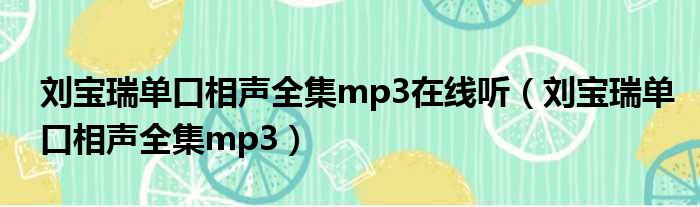 刘宝瑞单口相声全集mp3在线听(刘宝瑞单口相声全集mp3)