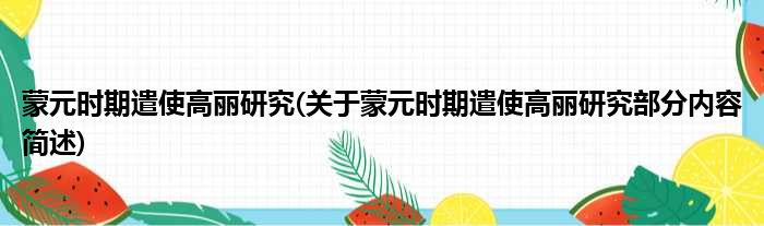 蒙元时期遣使高丽研究(关于蒙元时期遣使高丽研究部分内容简述)