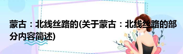 蒙古:北线丝路的(关于蒙古:北线丝路的部分内容简述)