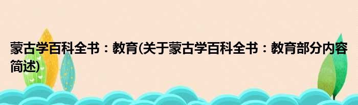 蒙古学百科全书:教育(关于蒙古学百科全书:教育部分内容简述)