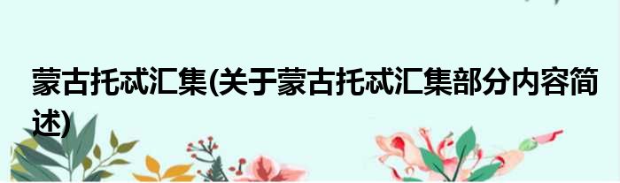 蒙古托忒汇集(关于蒙古托忒汇集部分内容简述)