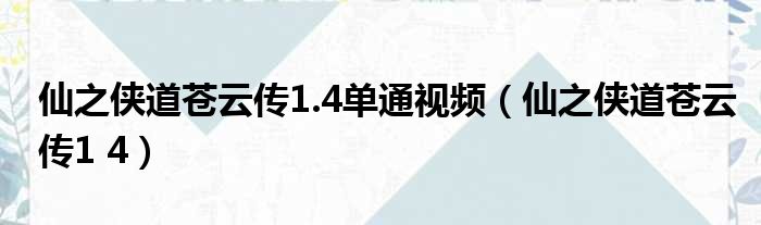 仙之侠道苍云传1.4单通视频(仙之侠道苍云传1 4)