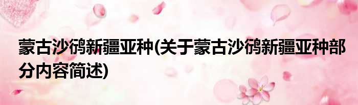 蒙古沙鸻新疆亚种(关于蒙古沙鸻新疆亚种部分内容简述)