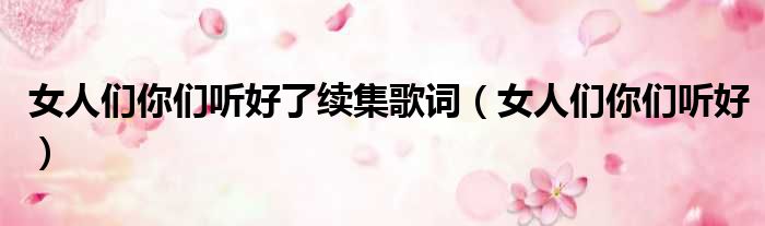 大家好,小活来为大家解答以上的问题。女人们你们听好了续集歌词,女人们你们听好这个很多人还不知道,现在让我们一起来看看吧!