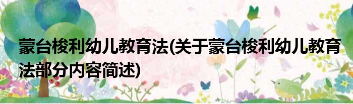蒙台梭利幼儿教育法(关于蒙台梭利幼儿教育法部分内容简述)