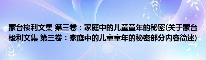 蒙台梭利文集 第三卷:家庭中的儿童童年的秘密(关于蒙台梭利文集 第三卷:家庭中的儿童童年的秘密部分内容简述)