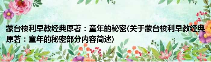 大家好,今天小方来说说一篇关于蒙台梭利早教经典原著:童年的秘密,关于蒙台梭利早教经典原著:童年的秘密部分内容简述的文章,那么现在就为大家来简单介绍下,希望对各位小伙伴们有所帮助。