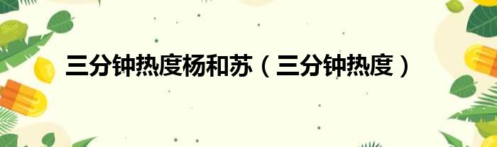 大家好,小活来为大家解答以上的问题。三分钟热度杨和苏,三分钟热度这个很多人还不知道,现在让我们一起来看看吧!