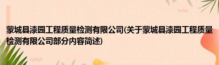 蒙城县漆园工程质量检测有限公司(关于蒙城县漆园工程质量检测有限公司部分内容简述)