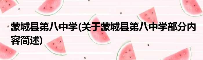 蒙城县第八中学(关于蒙城县第八中学部分内容简述)