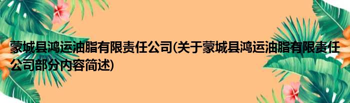 蒙城县鸿运油脂有限责任公司(关于蒙城县鸿运油脂有限责任公司部分内容简述)