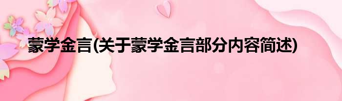 大家好,今天小方来说说一篇关于蒙学金言,关于蒙学金言部分内容简述的文章,那么现在就为大家来简单介绍下,希望对各位小伙伴们有所帮助。