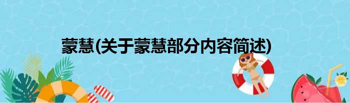 导读 大家好,今天小方来说说一篇关于蒙慧,关于蒙慧部分内容简述的文章,那么现在就为大家来简单介绍下,希望对各位小伙伴们有所帮助。
