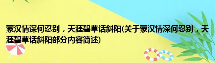 蒙汉情深何忍别,天涯碧草话斜阳(关于蒙汉情深何忍别,天涯碧草话斜阳部分内容简述)
