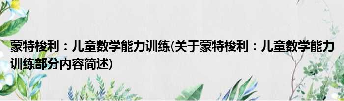 蒙特梭利:儿童数学能力训练(关于蒙特梭利:儿童数学能力训练部分内容简述)