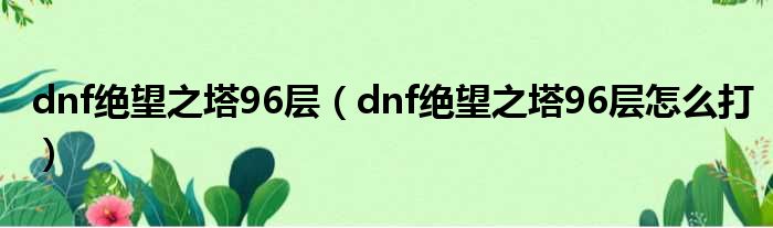 大家好,小活来为大家解答以上的问题。dnf绝望之塔96层,dnf绝望之塔96层怎么打这个很多人还不知道,现在让我们一起来看看吧!