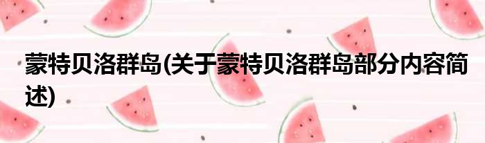 蒙特贝洛群岛(关于蒙特贝洛群岛部分内容简述)