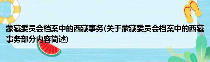蒙藏委员会档案中的西藏事务(关于蒙藏委员会档案中的西藏事务部分内容简述)