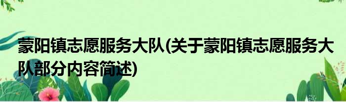 蒙阳镇志愿服务大队(关于蒙阳镇志愿服务大队部分内容简述)
