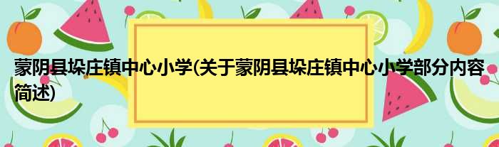 蒙阴县垛庄镇中心小学(关于蒙阴县垛庄镇中心小学部分内容简述)