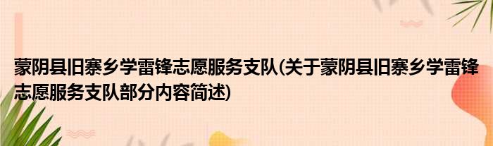 蒙阴县旧寨乡学雷锋志愿服务支队(关于蒙阴县旧寨乡学雷锋志愿服务支队部分内容简述)