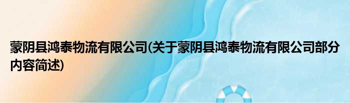 大家好,今天小方来说说一篇关于蒙阴县鸿泰物流有限公司,关于蒙阴县鸿泰物流有限公司部分内容简述的文章,那么现在就为大家来简单介绍下,希望对各位小伙伴们有所帮助。