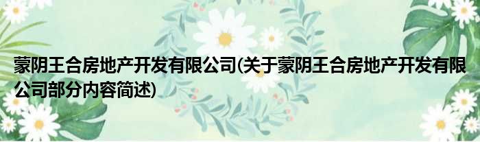 蒙阴王合房地产开发有限公司(关于蒙阴王合房地产开发有限公司部分内容简述)