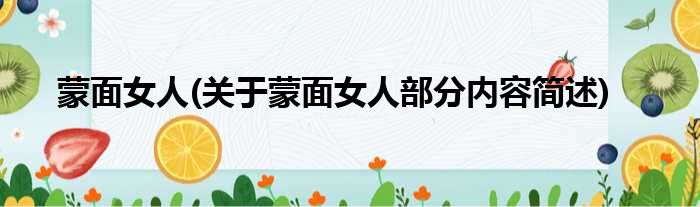 导读 大家好,今天小方来说说一篇关于蒙面女人,关于蒙面女人部分内容简述的文章,那么现在就为大家来简单介绍下,希望对各位小伙伴们有所帮助。