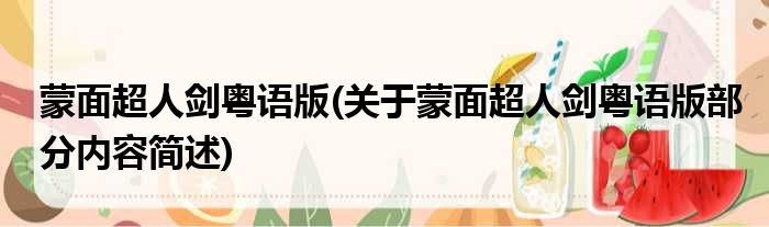蒙面超人剑粤语版(关于蒙面超人剑粤语版部分内容简述)