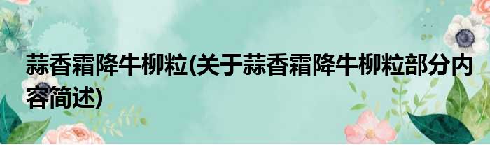蒜香霜降牛柳粒(关于蒜香霜降牛柳粒部分内容简述)