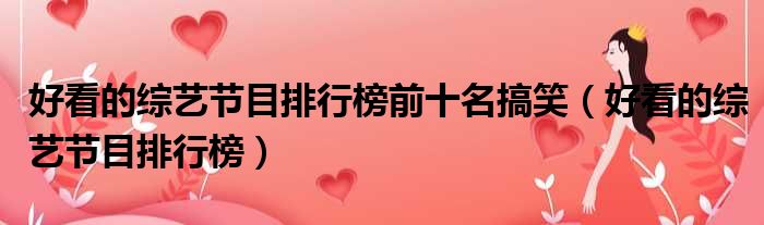 导读 大家好,小活来为大家解答以上的问题。好看的综艺节目排行榜前十名搞笑,好看的综艺节目排行榜这个很多人还不知道,现在让我们一起来看看吧!
