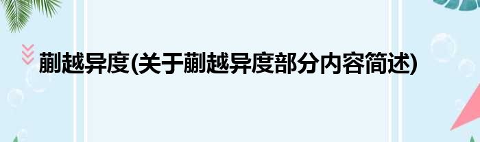 蒯越异度(关于蒯越异度部分内容简述)